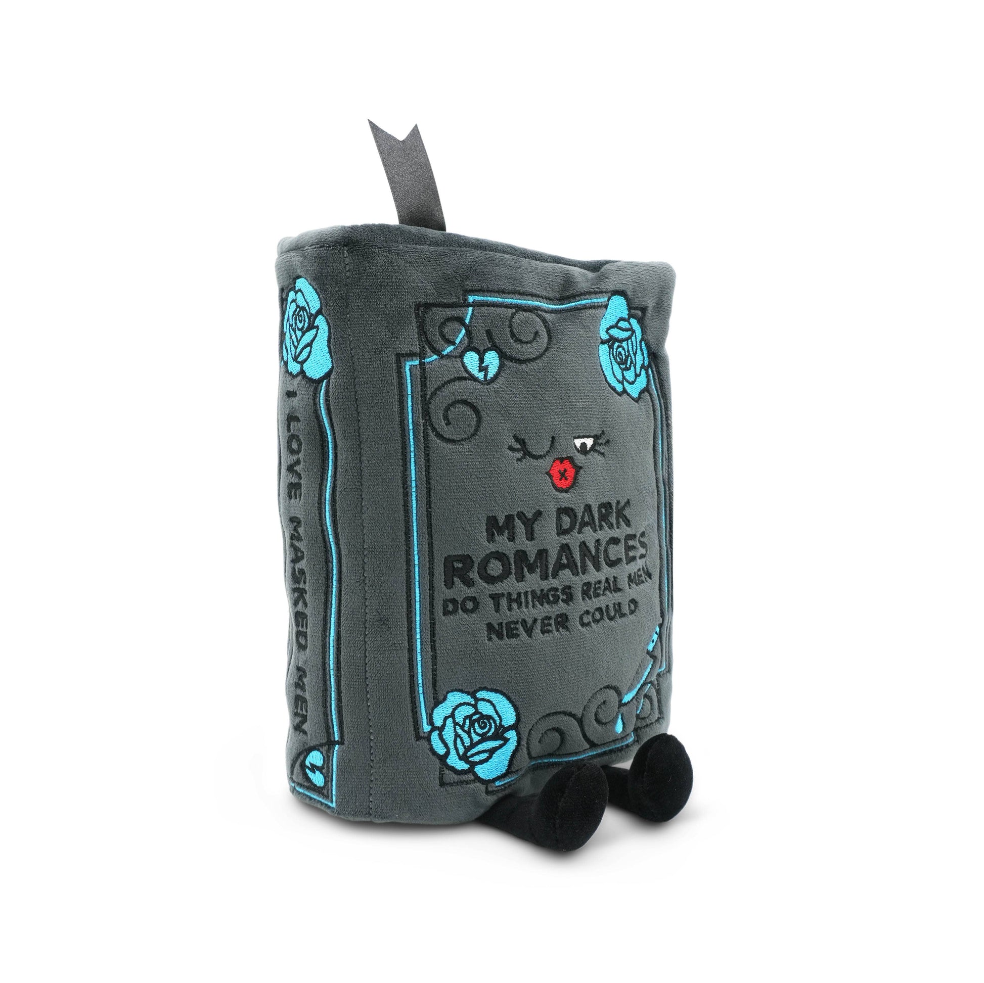 This Punchkin likes her MMCs tall, dark, and slightly obsessed with her. She knows the men in her dark romance reads will make her do and feel things real men never could. She craves the thrill of their every encounter and their undying devotion. Sure, their relationship is a bit… dark and unusual, but she’s perfectly okay with that. Her flirty expression, embroidered knife accent, and detailed spine that reads “I love masked men” make this book plushie simply irresistible. This book plushie is the perfect gift for anyone who loves a dark romance.